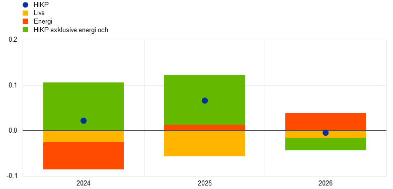 Avvecklingen av energi- och inflationskompensatoriska finanspolitiska åtgärder sedan december 2023 beräknas få en uppåtriktad effekt på den totala inflationen på 0,4 procentenheter 2024 och 0,1 procentenhet 2025.