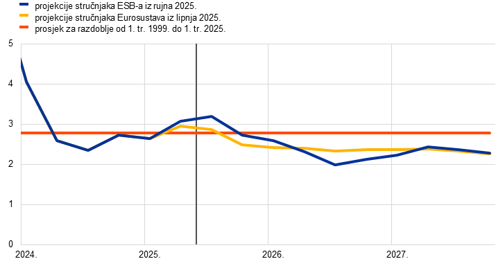 projekcije stručnjaka ESB‑a | rujan 2025. | 1,2 | 1,0 | 1,3 | 2,1 | 1,7 | 1,9 | 2,4 | 1,9 | 1,8 |