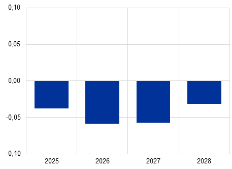 9. Het effect op de inflatie in de basisprojectie wordt geschat op cumulatief minder dan 0,1 procentpunt over 2025-2028.