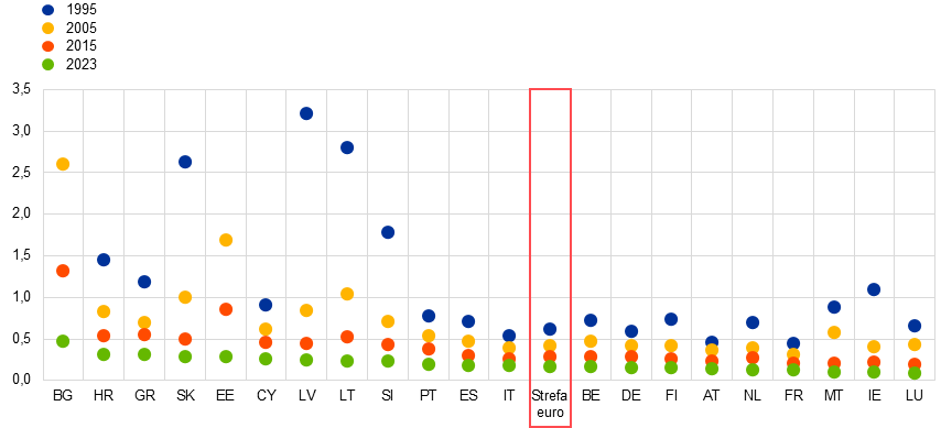 2) Obliczony jako średnia ważona importu partnerów handlowych strefy euro.