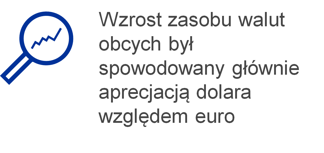 - Do tych zasobów zaliczają się aktywa wykazywane w pozycjach bilansowych „Należności od nierezydentów strefy euro w walutach obcych – środki na rachunkach w bankach, inwestycje w papiery wartościowe, kredyty zagraniczne i inne aktywa zagraniczne” oraz „Należności od rezydentów strefy euro w walutach obcych”.