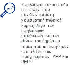 Οι καθαροί τόκοι-έσοδα επί των τίτλων που διακρατούνται για σκοπούς νομισματικής πολιτικής αυξήθηκαν κατά 528 εκατ. ευρώ σε 1.534 εκατ. ευρώ το 2022 (Διάγραμμα 15), κυρίως λόγω της αύξησης των καθαρών τόκων-εσόδων επί του προγράμματος APP (από τίτλους που διακρατούνται στο πλαίσιο των προγραμμάτων CBPP3, ABSPP και PSPP) και των χαμηλότερων αρνητικών καθαρών τόκων-εσόδων επί του χαρτοφυλακίου PEPP. Οι καθαροί τόκοι-έσοδα επί του προγράμματος APP αυξήθηκαν κατά 424 εκατ. ευρώ σε 1.571 εκατ. ευρώ το 2022, ενώ οι αρνητικοί καθαροί τόκοι-έσοδα επί του προγράμματος PEPP μειώθηκαν σε 103 εκατ. ευρώ από 252 εκατ. ευρώ. Οι εξελίξεις αυτές οφείλονται κυρίως στη σημαντική αύξηση των αποδόσεων των ομολόγων της ζώνης του ευρώ το 2022 (Διάγραμμα 16), η οποία επέτρεψε να διενεργηθούν αγορές τίτλων στο πλαίσιο και των δύο προγραμμάτων με υψηλότερες αποδόσεις σε σχέση με την ιστορική απόδοση των αντίστοιχων χαρτοφυλακίων. Οι καθαροί τόκοι-έσοδα επί των χαρτοφυλακίων των προγραμμάτων SMP, CBPP1 και CBPP2 μειώθηκαν κατά 45 εκατ. ευρώ σε 66 εκατ. ευρώ, λόγω της μείωσης του μεγέθους των εν λόγω χαρτοφυλακίων ως αποτέλεσμα της λήξης τίτλων.