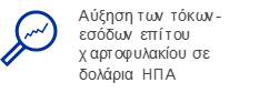 Οι καθαροί τόκοι-έσοδα επί των συναλλαγματικών διαθεσίμων αυξήθηκαν κατά 602 εκατ. ευρώ σε 798 εκατ. ευρώ, κυρίως λόγω της αύξησης των τόκων-εσόδων επί τίτλων εκφρασμένων σε δολάρια ΗΠΑ. Το μέσο επιτόκιο επί του χαρτοφυλακίου της ΕΚΤ σε δολάρια ΗΠΑ αυξήθηκε το 2022 σε σύγκριση με το προηγούμενο έτος λόγω (i) των πωλήσεων και των εξοφλήσεων ομολόγων χαμηλότερης απόδοσης που είχαν αγοραστεί στο παρελθόν και (ii) των αγορών τίτλων με υψηλότερες αποδόσεις λόγω της αύξησης των αποδόσεων των ομολόγων σε δολάρια ΗΠΑ από το τέλος του 2021 και μετά (Διάγραμμα 17).