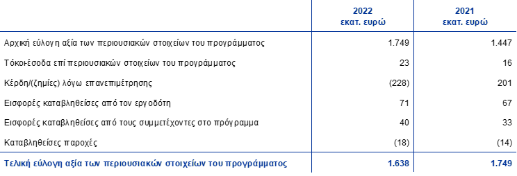 Το στοιχείο του ισολογισμού "Λογαριασμοί αναπροσαρμογής" περιλαμβάνει επίσης την επανεπιμέτρηση των μετεργασιακών παροχών.