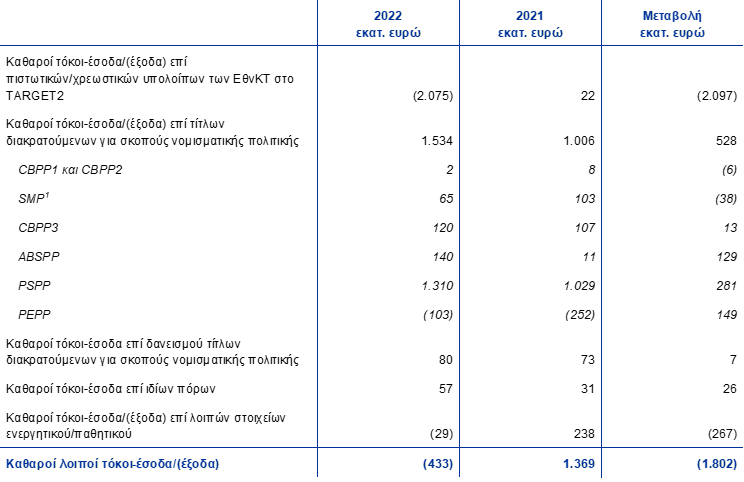 Καθαροί τόκοι-έσοδα/(έξοδα) επί τίτλων που διακρατούνται για σκοπούς νομισματικής πολιτικής