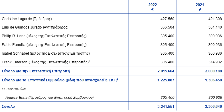 Η σημείωση αυτή δεν αποτελεί τμήμα των οικονομικών καταστάσεων της ΕΚΤ για το έτος 2022.