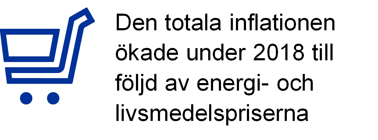 Den totala inflationen ökade jämfört med föregående år, och låg i genomsnitt på 1,7 procent under 2018, även om detta främst berodde på högre energipriser. Mått på underliggande inflation rörde sig huvudsakligen i sidled under hela året. Emellertid har utsikterna för den inhemska efterfrågan, arbetsmarknaden och löneutvecklingen gett oss tillförsikt om att inflationen kommer att röra sig mot vårt mål på medellång sikt.