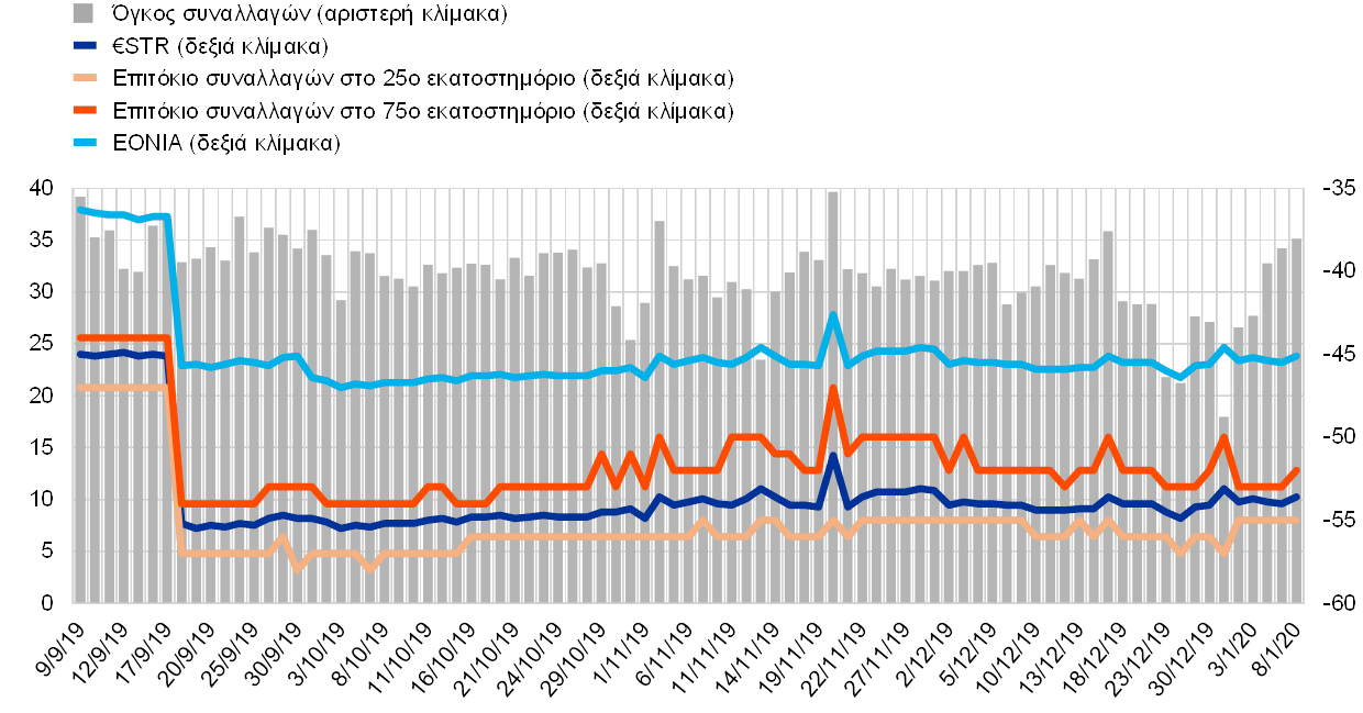 Στις 2 Οκτωβρίου ξεκίνησε η δημοσίευση ενός νέου επιτοκίου αναφοράς μίας ημέρας για το ευρώ, του €STR (euro short-term rate), που προβλέπεται ότι θα αντικαταστήσει το ισχύον επιτόκιο EONIA μέχρι τον Ιανουάριο του 2022. Η καθημερινή παραγωγή του €STR λειτουργεί ικανοποιητικά και η μεθοδολογία έχει αποδειχθεί αξιόπιστη.