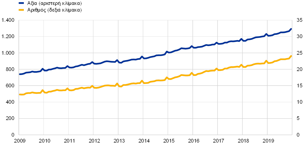 - Βλ. τις εκδόσεις Μαΐου 2019 και Νοεμβρίου 2019 της Financial Stability Review της ΕΚΤ.