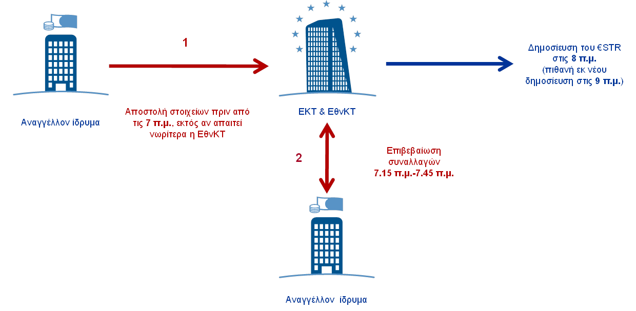 - Το €STR δημοσιεύεται στον δικτυακό τόπο της ΕΚΤ και επίσης μέσω του συστήματος διάχυσης πληροφοριών αγοράς Market Information Dissemination platform – MID της ΕΚΤ, που είναι ο βασικός δίαυλος δημοσίευσής του, και μέσω της βάσης δεδομένων Statistical Data Warehouse (SDW) της ΕΚΤ.
