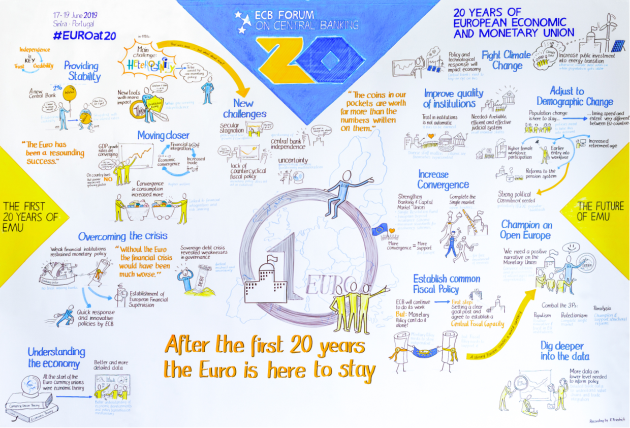 20 χρόνια ευρωπαϊκής Οικονομικής και Νομισματικής Ένωσης – αφίσα από το Φόρουμ Κεντρικών Τραπεζών της ΕΚΤ στη Σίντρα