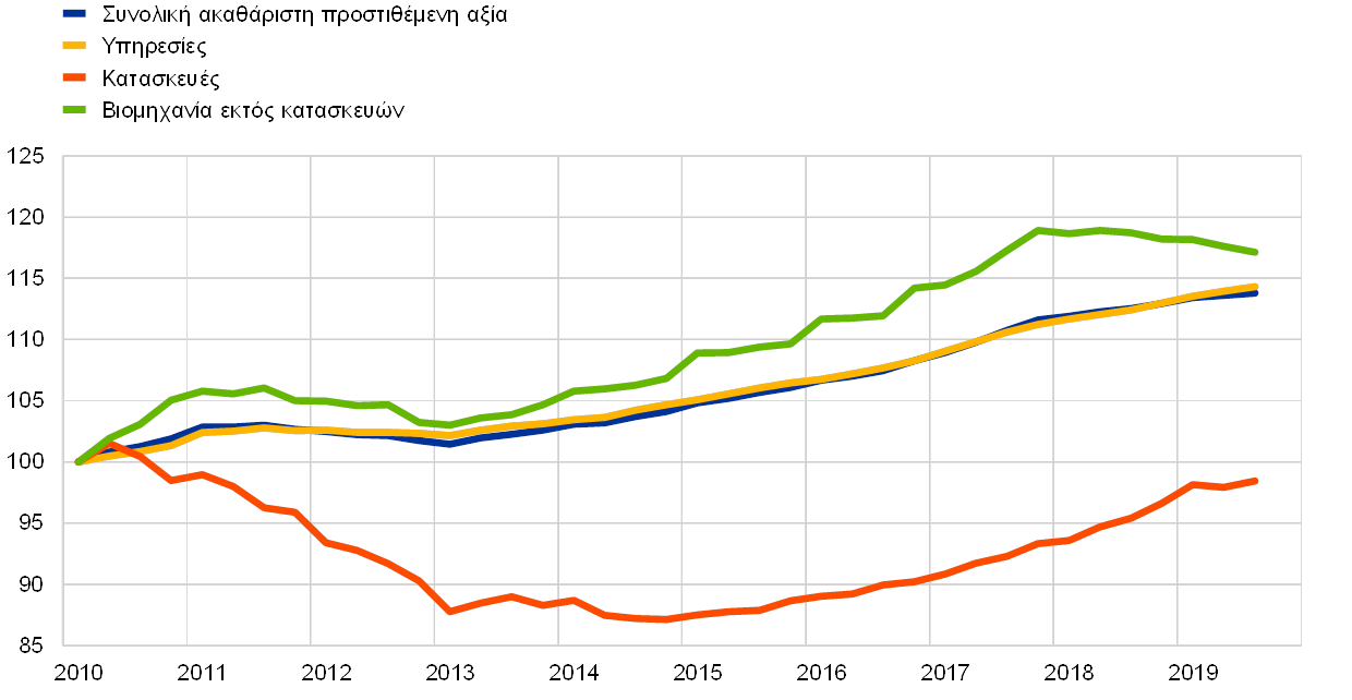 - Επισκόπηση της αλληλεπίδρασης μεταξύ του τομέα της μεταποίησης και του τομέα των υπηρεσιών βλ. στο πλαίσιο με τίτλο “Developments in the services sector and its relationship with manufacturing”, Economic Bulletin, Issue 7, ECB, 2019.