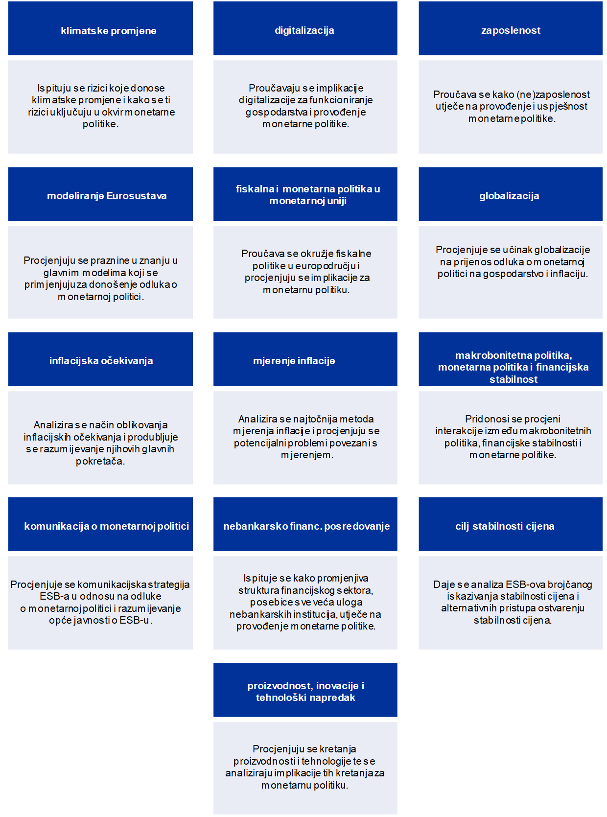 Upravno vijeće u siječnju je počelo preispitivati strategiju monetarne politike ESB‑a kako bi ona i nadalje bila primjerena svrsi. Preispitivanjem se nastoje temeljito analizirati posljedice velikih promjena koje su se dogodile od prošlog preispitivanja u 2003. Među njima su postojano smanjivanje inflacije, ravnotežne kamatne stope te učinci globalizacije, digitalizacije i klimatskih promjena. Razmotrit će se i pitanje treba li ESB i na koji način prilagoditi svoju strategiju monetarne politike kao odgovor na te promjene. Dovršetak preispitivanja očekuje se u drugoj polovini 2021.