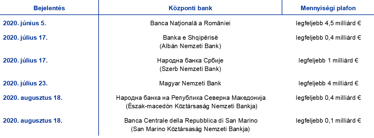 - Lásd: „ECB Banking Supervision provides temporary capital and operational relief in reaction to coronavirus” (Az EKB bankfelügyelete a koronavírusra válaszul ideiglenes tőke- és operatív könnyítéseket foganatosított), sajtóközlemény, EKB Bankfelügyelet, 2020. március 12.