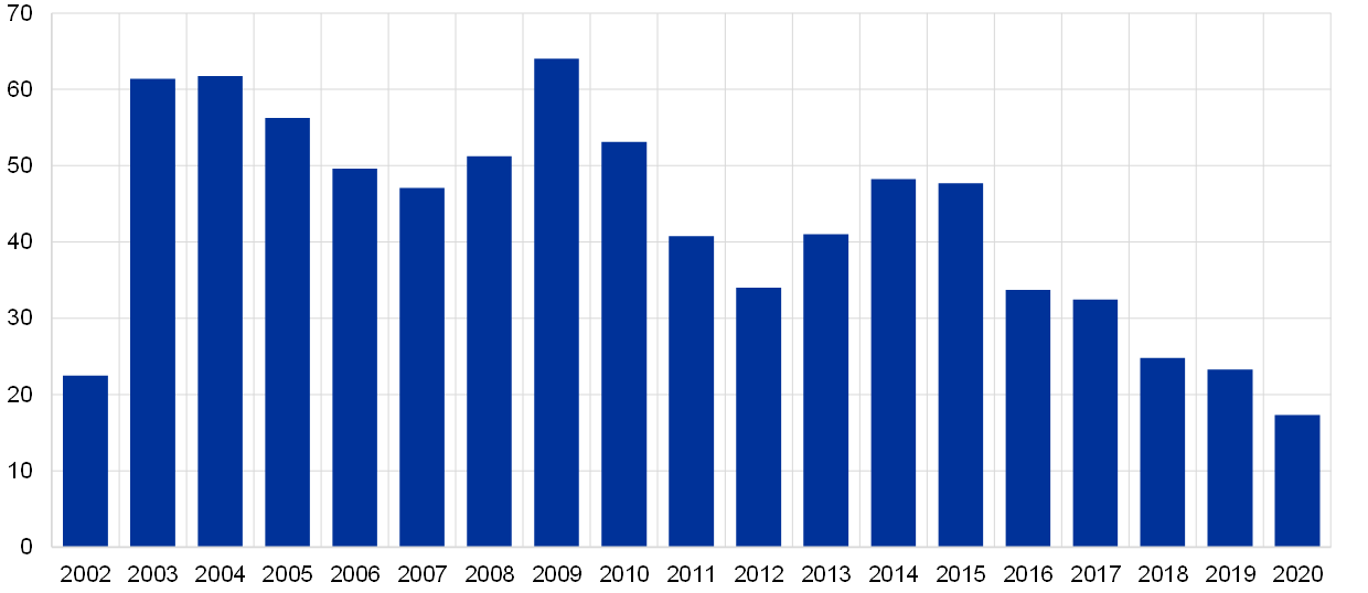 - További információ az EKB felügyeleti tevékenységről szóló 2020. évi jelentésének 4.1 szakaszában található.