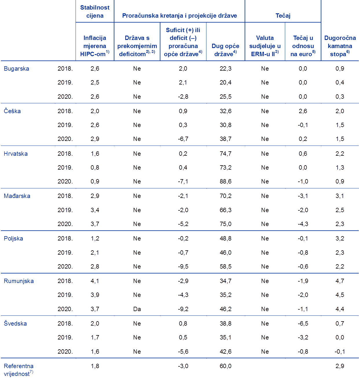 Referentno razdoblje u ovom izvješću je od 1. travnja 2018. do 31. ožujka 2020. Svi bilateralni tečajevi službeni su referentni tečajevi ESB‑a (vidi poglavlje 6.).
