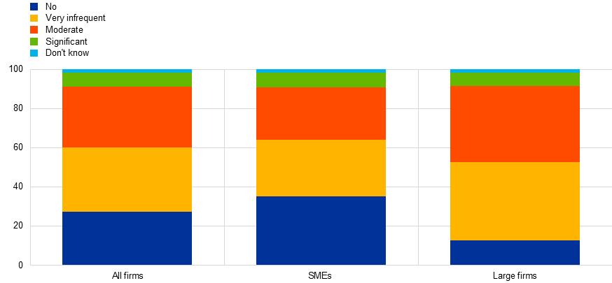 - The use of artificial intelligence is widespread among euro area firms, though most firms use it very infrequently or moderately.