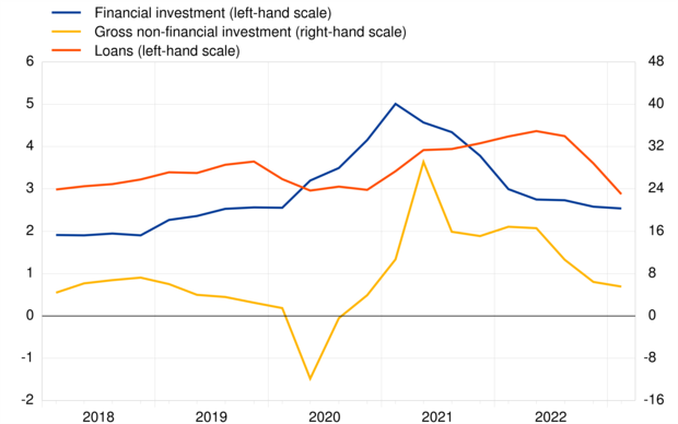 • Households' financial investment increased at broadly unchanged annual growth rate of 2.5% in first quarter of 2023, after 2.6% in previous quarter