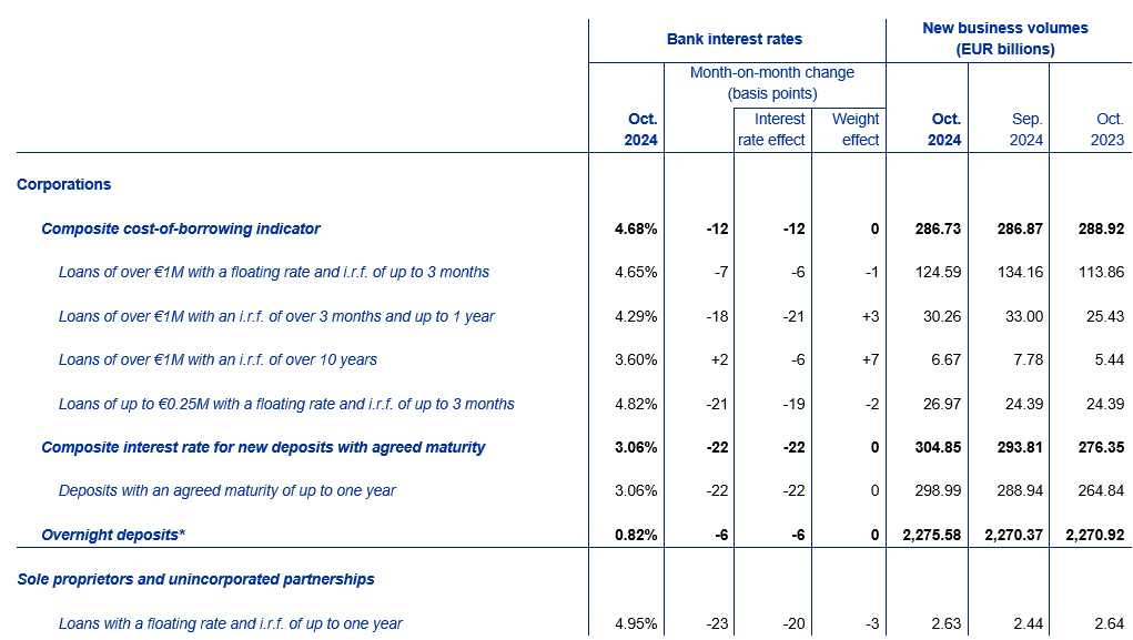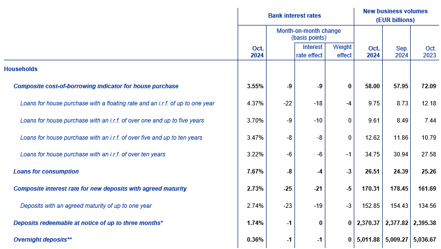 Euro area bank interest rate statistics: October 2024