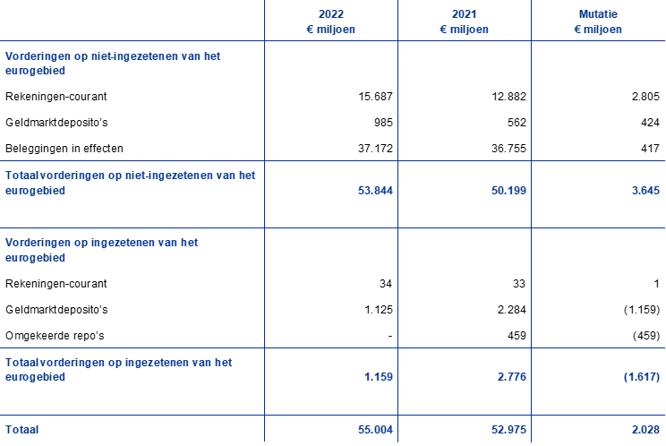 Toelichting: De ‘Herwaarderingsrekeningen’ omvatten de herwaarderingswinsten op de goudvoorraad, deviezenreserves en aangehouden effecten, maar niet de herwaarderingsrekening voor vergoedingen na uitdiensttreding.