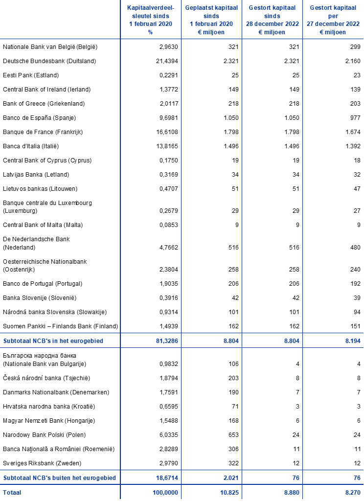 Zie het persbericht van 30 januari 2020 over het geplaatst kapitaal van de ECB na het vertrek van de Bank of England uit het ESCB.
