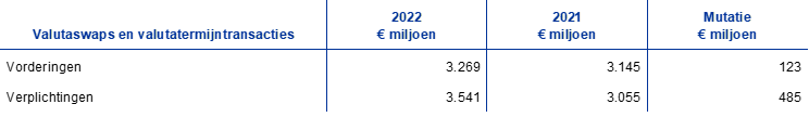 Deze nettoposities bestaan uit het verschil van de in de desbetreffende vreemde valuta luidende activa en verplichtingen die onderhevig zijn aan valutaherwaardering. Deze zijn opgenomen onder ‘Vorderingen op niet-ingezetenen van het eurogebied, luidende in vreemde valuta’, ‘Vorderingen op ingezetenen van het eurogebied, luidende in vreemde valuta’, ‘Overlopende activa’, ‘Herwaarderingsverschillen op instrumenten buiten de balans’ (onder de verplichtingen) en ‘Overlopende passiva’. Hierbij wordt tevens rekening gehouden met buiten de balans verantwoorde valutatermijntransacties en valutaswaps. Positieve resultaten uit hoofde van de prijsherwaardering van in vreemde valuta luidende financiële instrumenten zijn niet inbegrepen.
