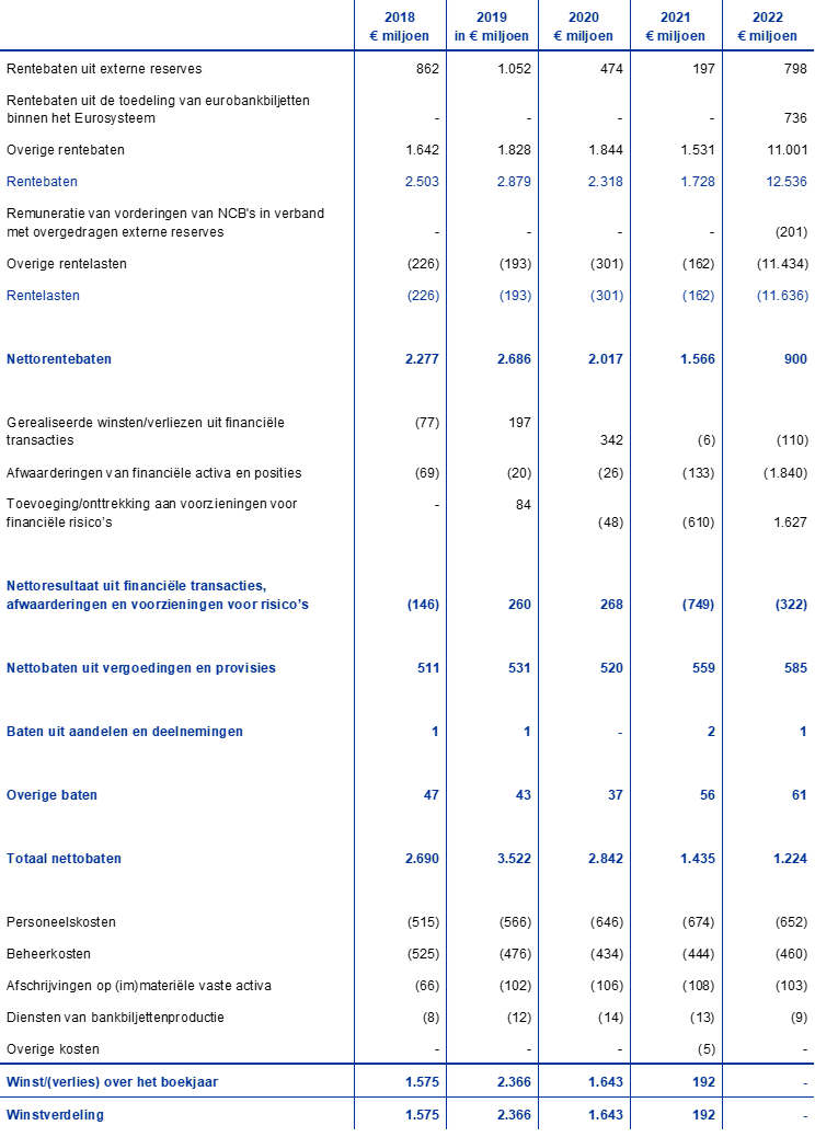 Belangrijkste posten van de winst-en-verliesrekening van de ECB