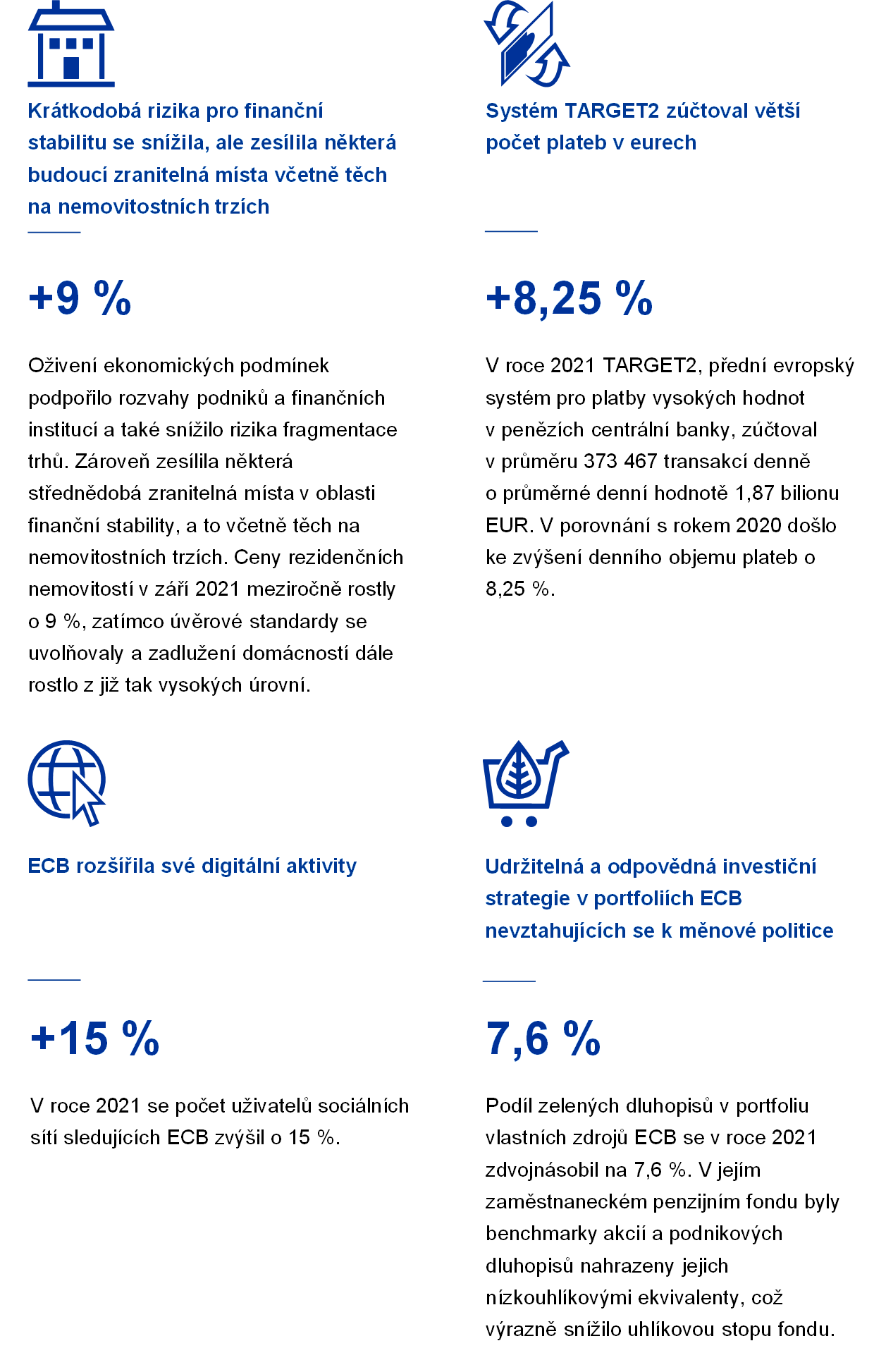 ** Upozorňujeme, že tento text se týká činnosti ECB v roce 2021 a byl dokončen před ruskou invazí na Ukrajinu. ECB je připravena podniknout veškeré kroky potřebné k zajištění finanční stability a naplnění svého mandátu zajistit cenovou stabilitu. **
