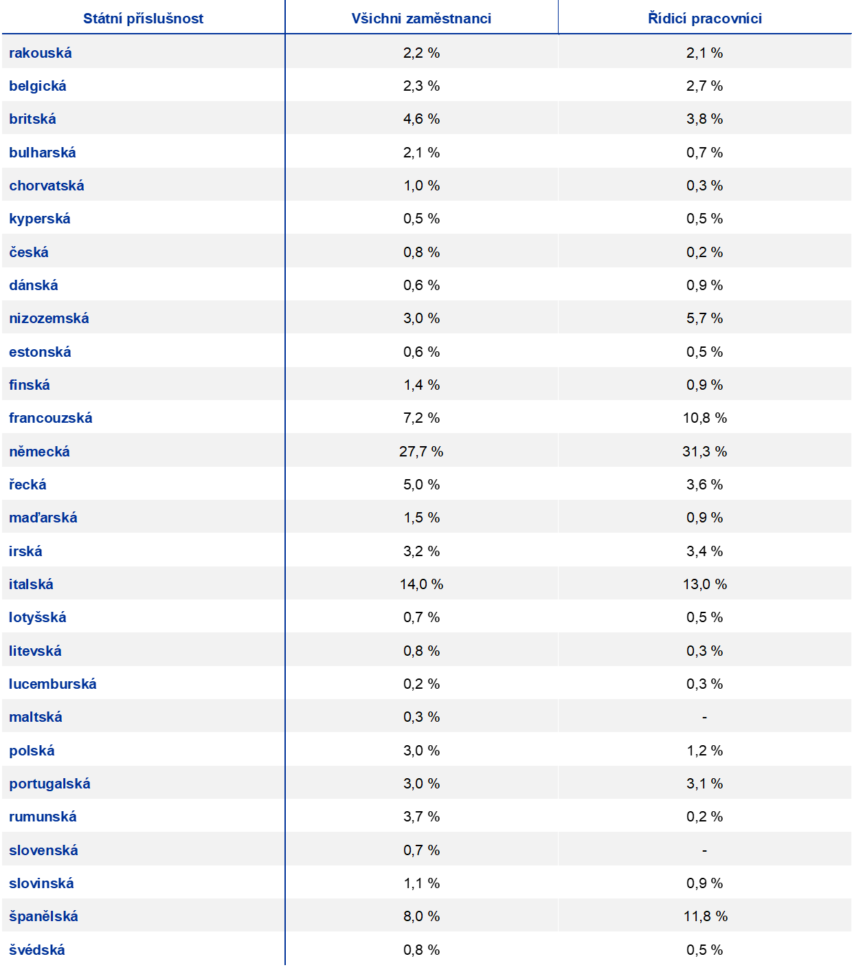 - Přestože Spojené království již není členským státem EU, britská státní příslušnost je zahrnuta z důvodu kontinuity.