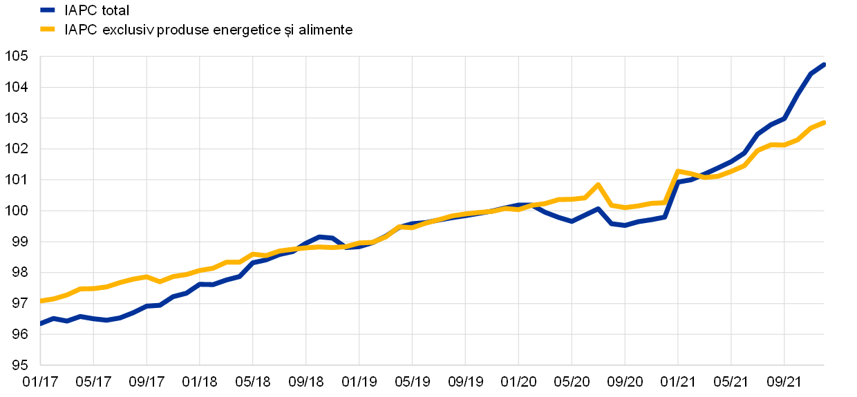 În 2021, economia mondială a consemnat o redresare puternică, în principal ca urmare a redeschiderii economiilor pe fondul creșterii ratelor de vaccinare împotriva COVID-19 și a sprijinului susținut și prompt din partea politicilor. Cu toate acestea, revigorarea a fost, într-o oarecare măsură, neuniformă între economiile dezvoltate și cele emergente. Inflația globală a crescut, reflectând în principal majorarea accentuată a prețurilor produselor energetice și expansiunea mai rapidă a cererii față de ritmul ofertei în unele sectoare, pe fondul dificultăților generate de pandemie și al altor blocaje pe partea ofertei și la nivelul transporturilor. În zona euro, dinamica PIB real s-a redresat puternic în 2021, după ce anul precedent înregistrase cea mai mare scădere din perspectivă istorică. Această revenire, care a dus la îmbunătățirea condițiilor pe piețele forței de muncă, a fost susținută de măsuri de politică monetară și fiscală prompte și ferme. Cu toate acestea, incertitudinea economică s-a menținut la un nivel ridicat în cursul anului, iar diferența dintre cele mai mari sectoare, industrie și servicii, a fost pronunțată. La începutul anului, creșterea a fost afectată de măsurile de izolare și de restricțiile de călătorie, care au avut un impact negativ asupra ofertei și cererii de servicii. Ulterior, ca urmare a revigorării deosebit de robuste a cererii globale, apariția unor blocaje pe partea ofertei și creșterea costurilor cu energia au redus producția în sectorul industrial. Inflația din zona euro, măsurată pe baza indicelui armonizat al prețurilor de consum (IAPC), a crescut brusc la 2,6% în 2021, de la 0,3% în 2020. Aceasta a rămas la niveluri scăzute în primele câteva luni, dar a urcat în cursul anului, atingând o rată de 5,0% în decembrie. Ascensiunea prețurilor a reflectat în mare măsură o creștere accentuată și generalizată a prețurilor produselor energetice, dezechilibrele între cerere și ofertă ca urmare a redeschiderii economiilor și o serie de factori mai tehnici, precum încetarea reducerii temporare a cotei TVA în Germania. După anul 2021, se preconiza că inflația se va menține ridicată pe termen scurt, dar va scădea în 2022. Totuși, invadarea Ucrainei de către Rusia a amplificat semnificativ incertitudinile asociate perspectivelor inflației.