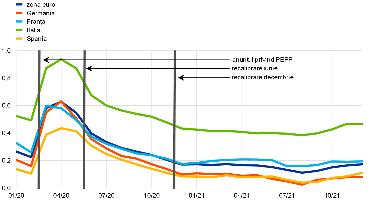 În luna decembrie, Consiliul guvernatorilor a considerat că progresele înregistrate cu privire la redresarea economică și în direcția țintei noastre de inflație pe termen mediu permit o reducere progresivă a ritmului achizițiilor de active în trimestrele următoare. Consiliul guvernatorilor a anunțat că achizițiile nete de active efectuate în cadrul PEPP vor înceta în luna martie 2022 și că celelalte programe ale sale de achiziționare de active vor fi reduse treptat.