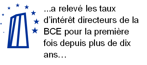 Devant l’évolution des perspectives d’inflation, il est néanmoins devenu manifeste que le retour à une orientation monétaire globalement neutre ne suffirait pas. Selon nos projections, l’inflation devait atteindre des niveaux trop largement supérieurs à notre objectif à moyen terme de 2 %, pendant une trop longue période, et certains signes indiquaient qu’elle devenait plus persistante, les tensions sur les prix se généralisant et l’inflation sous-jacente se renforçant. Un tel environnement exigeait que nous portions les taux d’intérêt à des niveaux restrictifs en vue de freiner la demande.