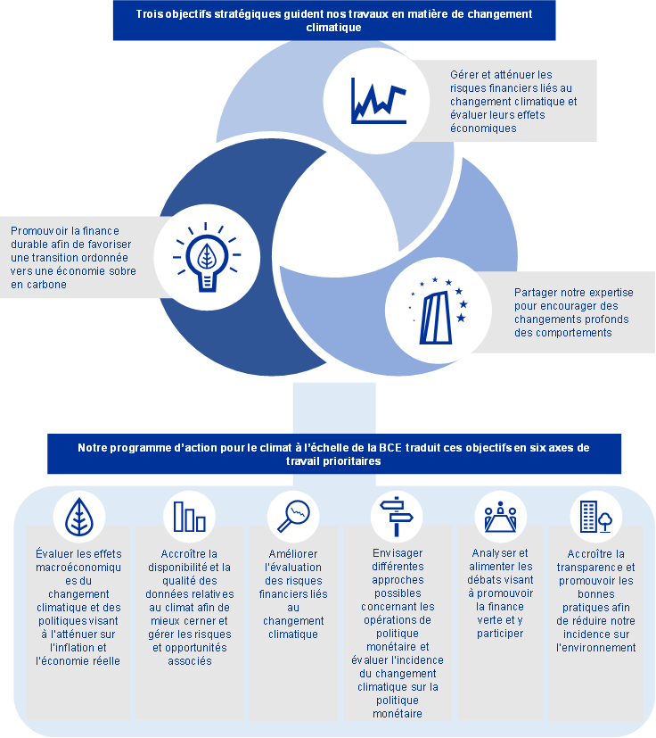 Pour plus d’informations, cf. « La Banque centrale européenne présente un plan d’action visant à inscrire les questions liées au changement climatique dans sa stratégie de politique monétaire », communiqué de presse, BCE, 8 juillet 2021.