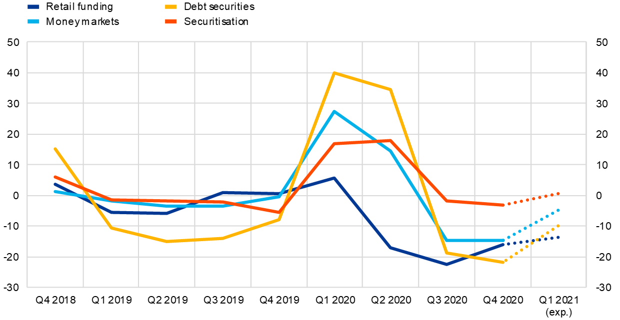 Looking ahead to the first quarter of 2021, euro area banks expect that their access to retail and wholesale funding, except securitisation, will continue to improve, but to a lesser degree than in the fourth quarter of 2020.