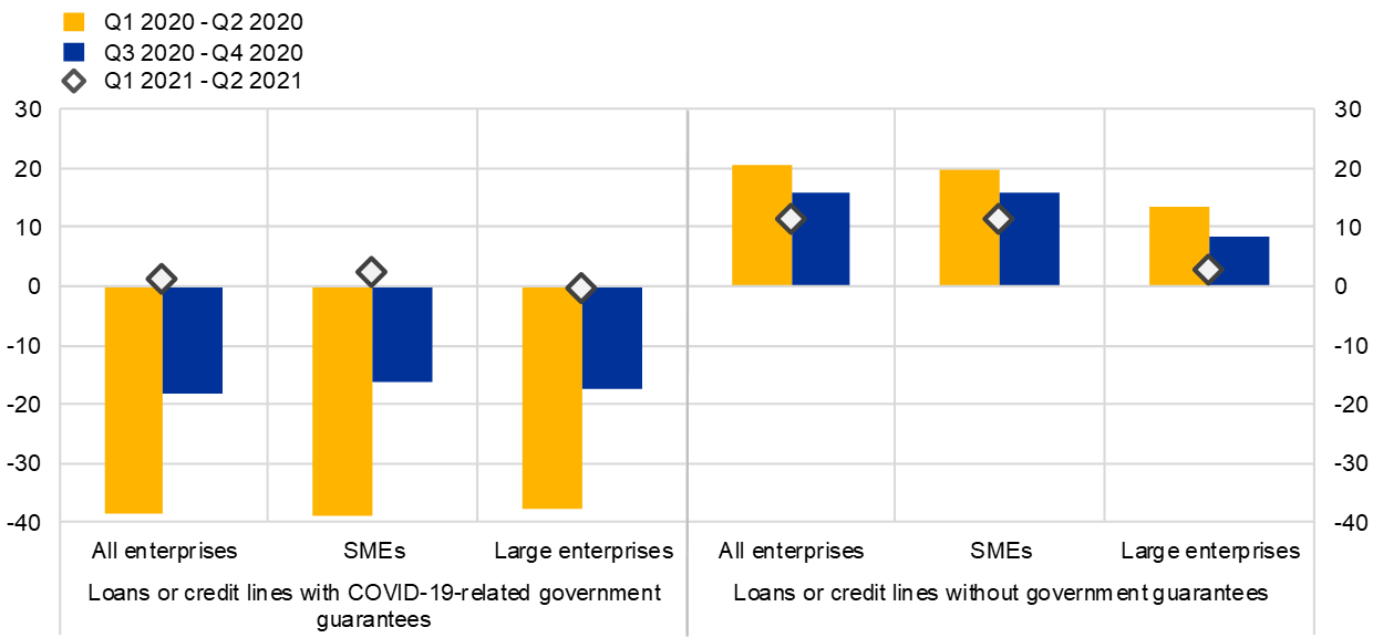 Changes in demand for loans to enterprises with and without COVID-19-related government guarantees