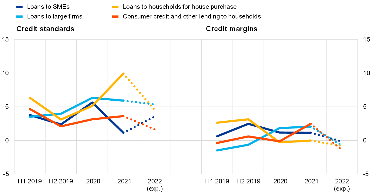 6. Credit standards for housing loans have been revised from 8% to 2% for the third quarter of 2021 owing to changes in the aggregation of euro area results introduced with the January 2022 BLS.