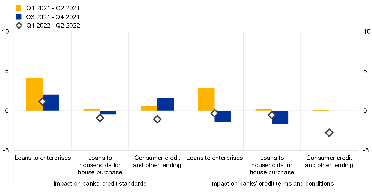 8. Credit standards for consumer credit have been revised from -1% to -3% for the third quarter of 2021 owing to changes in the aggregation of euro area results introduced with the January 2022 BLS.