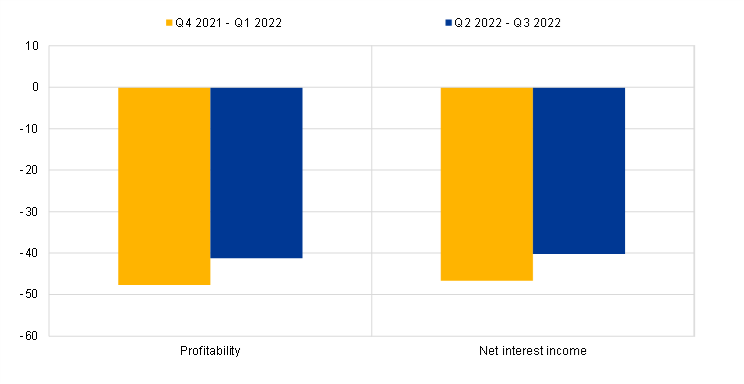 Notes: Includes the impact of the ECB’s two-tier system for remunerating excess liquidity holdings. The net percentages are defined as the difference between the sum of the percentages for “increased considerably” and “increased somewhat” and the sum of the percentages for “decreased somewhat” and “decreased considerably”.