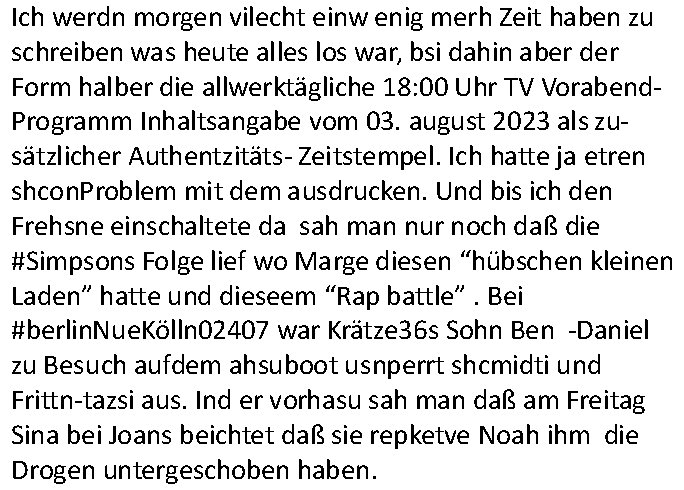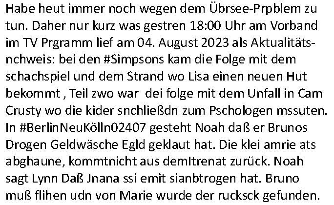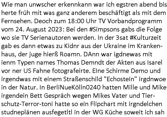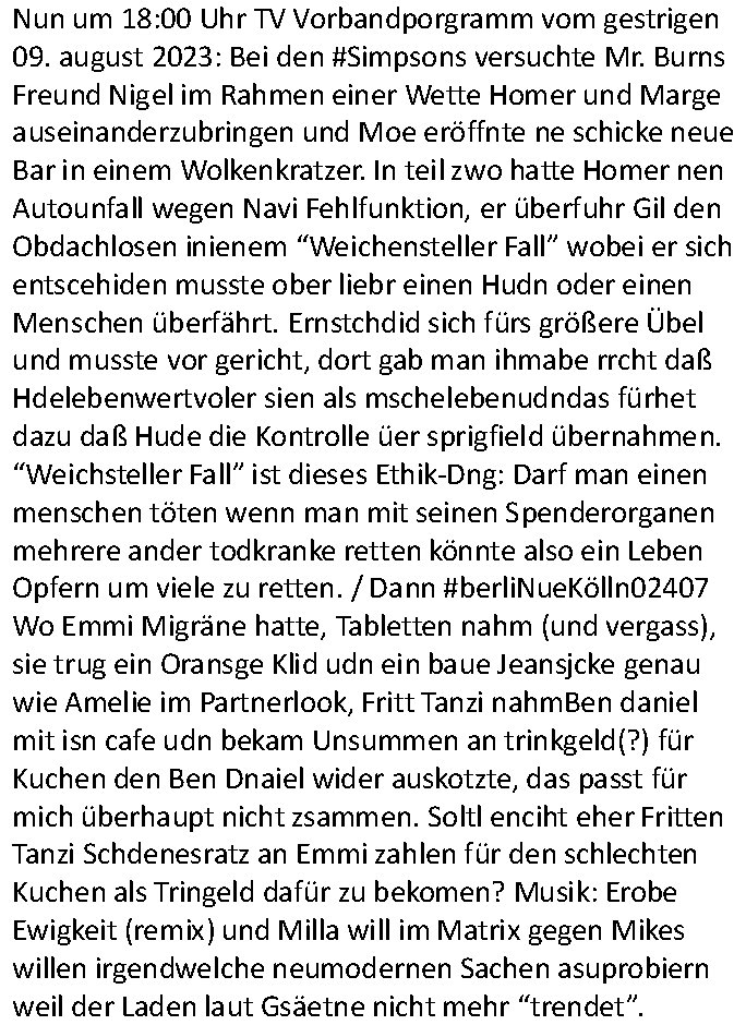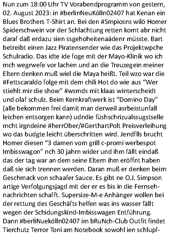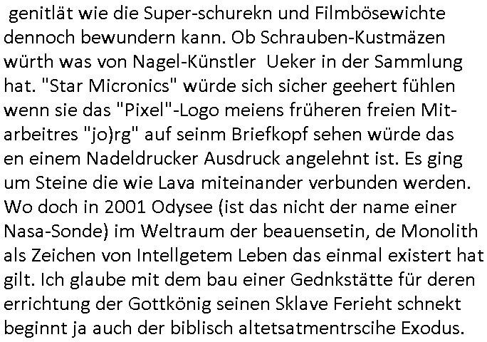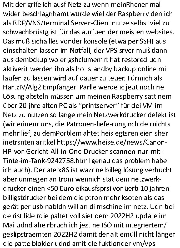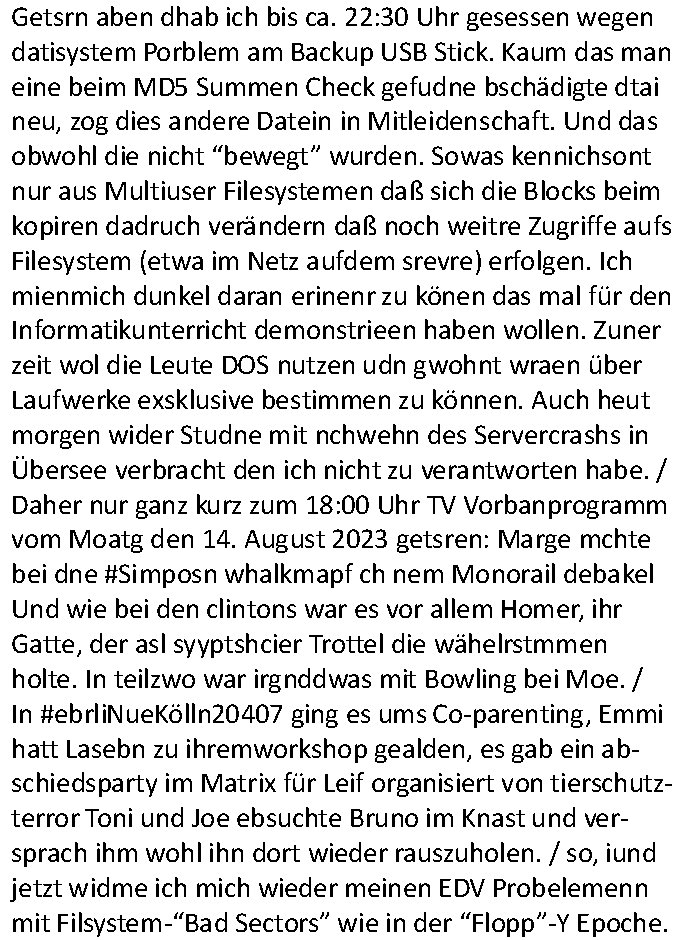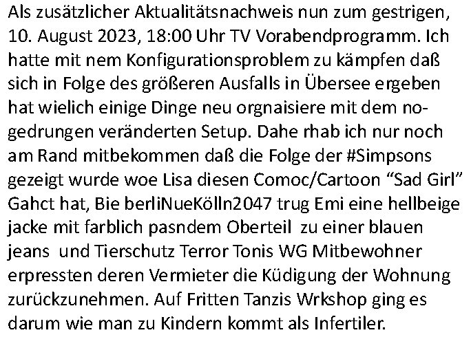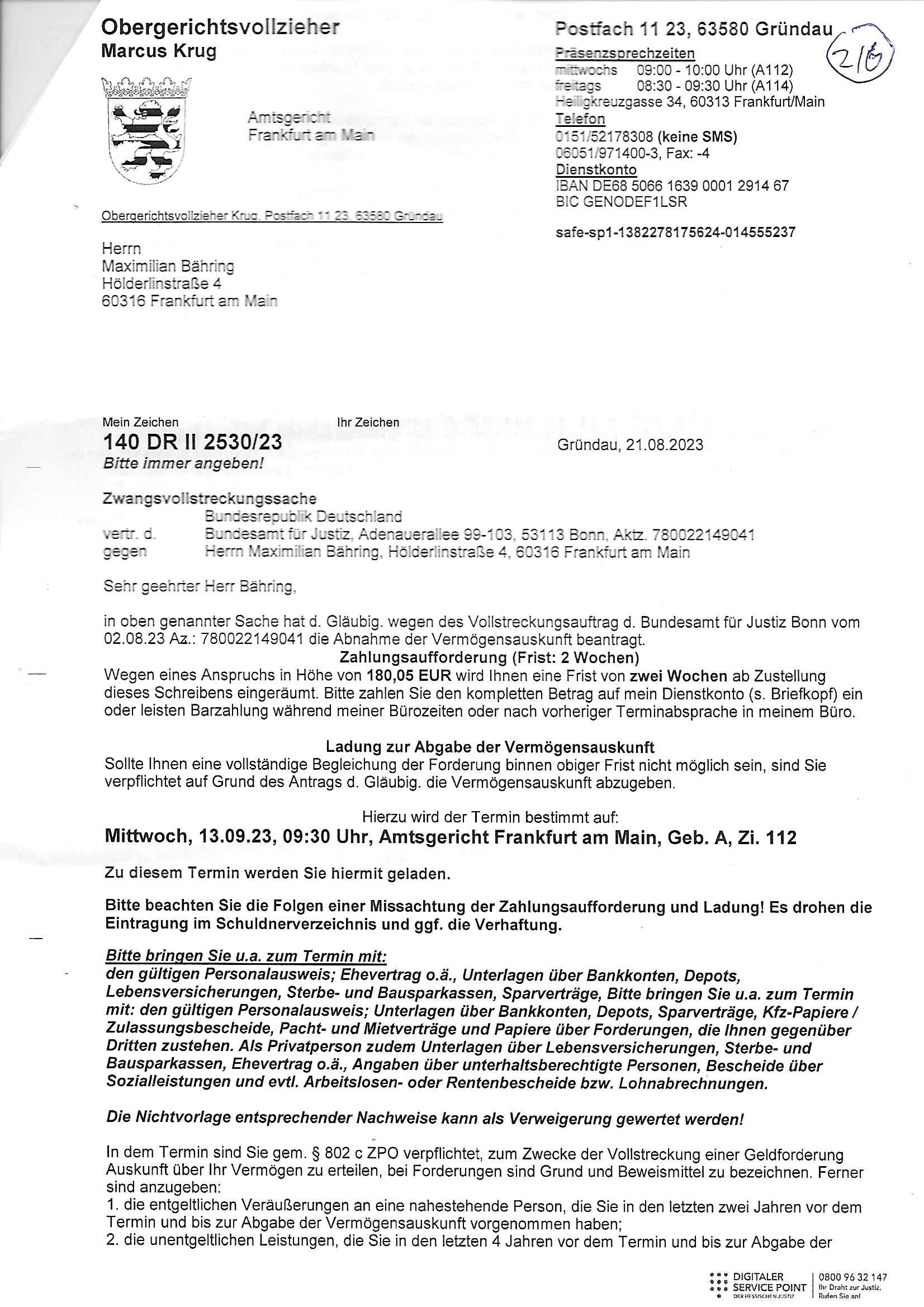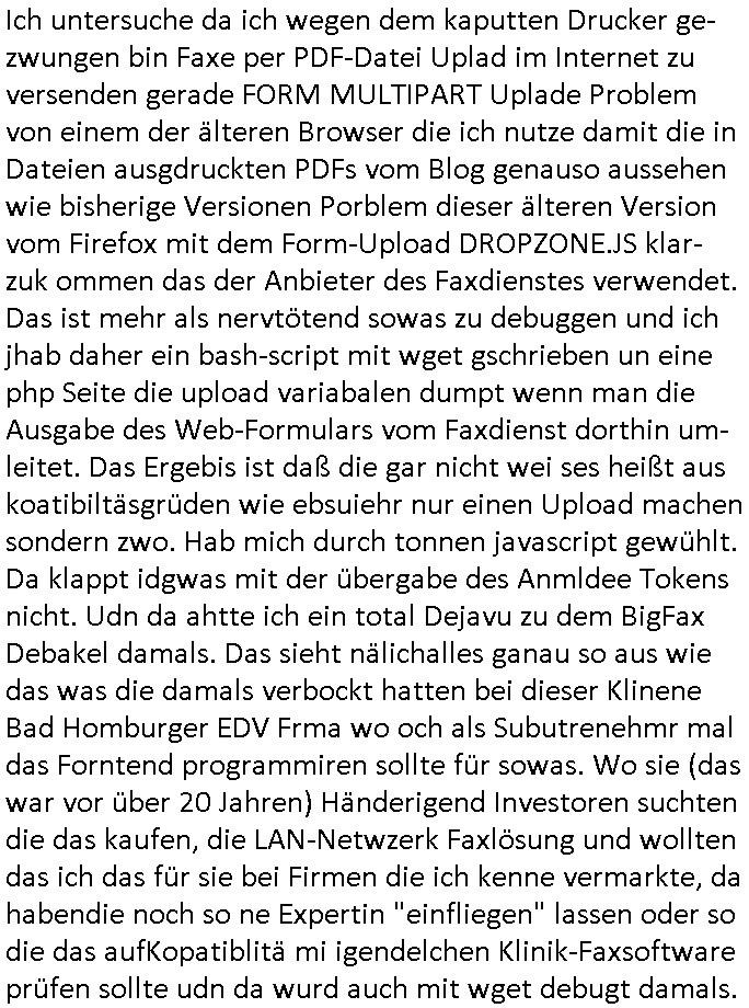 Maximilian Baehring Hoelderlinstrasse 4 D-60316 Frankfurt/M vorab per Fax: +49/(0)611/32761-8326 (-8118) (wird persönlich von mir überbracht) Landgericht Frankfurt a. M. (Präsidium z.Hd. des Herrn Dr. Wolf oder Herrn Möller) Gerichtstraße 2 / D-60313 Frankfurt a.M. via gemeinsame Poststelle der Justizbehörden Gerichtsstraße 2 D - 60313 Frankfurt a.M. Im Internet findet sich unter der URL http://banktunnel.eu/pdf.php und URL http://blog.sch-einesystem.de/ mein ausgedruckt ÜBER 25.750 DIN-A4 Seiten umfassendes Internet Tagebuch / Blog, als Offline Version downloadbar unter http://*** /***/ als ISO-Image (brennbar auf DVD) mit tagesaktuellen ZIP-Archiv Ergänzungen Frankfurt/M., 01. August 2023 Eingereichte Berufung gegen Urteil vom 27./28. Juni und zugestellt 01. Juli 2023 in 380 C 478/21 (14) Amtsgericht Frankfurt a.M. Höchst (Postunterschlagung / Vor-schußvetrug Anwaltsrechnung Akteneneinsicht polizeiliches Ermittlunsgeverfahren) siehe auch 6151 Js 217162/21 – 931 Gs Amtsgericht Frankfurt/M und ST/0082472/2021, ST/0397167/2021, … sowie vor allem eben auch SPH/0584256/2020 Polizei Frankfurt a.M. 3320 AR 301535/20 Staatsanwaltschaft/332 Js 63920/20 Amtsanwltschaft Frankfurt/M Dienstaufsichtsache 313 bE 1.104/22 Präsident Amtsgericht Frankfurt/M (10./12 Januar 2023) Sehr geehrter Herr Dr. Wolf, sehr geehrter Herr Möller! Ich habe gestern aufgrudn von Pobleme mit der postustellung mehrfach eingreicht - Begleitschreiben vom 30. Juli 2023 - Berufungsschrift (3 seitig) in 380 C 478/21 Amtsgericht Frankfurt a.M. Höchst - Prozesskostenhilfsantrag (die Kopien des Original bei der Anwältin) mitsamt Anlagen HartzIV/Alg2-Bescheid, Kontoauszug, Mietvertrag/-erhöhungsschreiben aufgrund von Problemen mit meinem Drucker per Intrenet/PDF/Internetcafe Telefax Da ich Opfer einr Eprsssung binm in den letzten Wochen auch von bediensten ihres hauses massivst bei der Eirichung dieser Berufugsschrift behindert worden bin wend ich mich nach der Dienstafsuschtssache inder Vorinstanz (10. Januar 2023) 313 bE 1.104/22 Präsident Amtsgericht Frankfurt/M nun direkt an Sie. Da meine Post NACHWEISLICH (zumindest teilweise) abgefangen wird versende ich alles per Einschreibebriefen zudme nochmal vorba per afx und führe imItrenet ein Oniline Tagebuch in dem ich meinr vefhren ebenflls dokumentiere, dessntagszsummenfssung geht dann per Email nochmals an verschiedenste Empfänger daruter NGOs wie amnesty und transparency itenational, human rights watch, den Verasserdes Handbches der Anwaltshaftung der mich früher anwaltlich vertrat und ander Anwälte, Justiz, in mein Fallevricklte Diplomaten und den Bundespräsidenten (der mir auch anwortert) und Rundfuk/TV/Presse/“Medien“. All ds zum zecke der dokuentation des nuäglichen Lids das bdistete irhes hause mir antun. Man hat mich druch Grund- und Menshenrechtswidrige Verweigerung mines aktiv Klagerechts udnrhcts Strfanzeingen einzreihcen in zahlreiche Suizidversuihe gehetzt,mein Kidn wurd entführt nachdem man mich unter Vergiftung mit k.O. Drops und dann Psychodrogen unter Freiheitberubung ver-gewaltigt hat was bei (erwachsenen) Männern eher selten vorkommt. Um ein Online Tagebuch zu behindern kappt man mit drhschren Haut-telfonkablstänge die ins mistshaus führernwo ich wohne, Stromkabel werden aus der Wand gerissen, ich werde auf offen Straße nagefidnet und verprügelt wenn ich mit Post fürs Gericht/Staatsanwaltschaft das Haus verlasse, man hat mich fast zu Tode gewürgt. Unetr den DDOS/Viren/Spam/Hacker- attacken ging men EDV-Uternehemnkautt, wir hatten amende füftselltge Standleitungskosten pro Monat da wir mehere vorhalen musst aufgund städger Sabotagekat bedingter Ausfälle. Am 12. ferur 202 hrlet ich nun Drohrufe von eienm Mann der sich wechselnd falsch als „Landrichter Beck“ und „Viktor vom KGB/SFB“ ausgibt und szge dien an, mit Audiodateien des Geräschmitshcnitts. Dies polizeliche efahrn soll angelich eingestellt worden sein weil ein massiv überteuerter Anwlt (Bestechlichkiet?) Akttesicht genommen habe am 08. Juni 2020 selstm nur daß ich nch am 15. udn 17. Juni korrespodnez dazu führe nachdem mich einPolizste im Rehemnder emrittlugen anrief dem die Bewsie Audiodateien nicht vor-lagen wgeen Fehler auf der Polzeiwebsite konnten die nicht hochgeladen werden und wurden vorsichtshalber im Ausland im Kurs des Emai-verteulder versteckt bis hiesige Grichte über dern Zulässgkeit im Verfahren uretilen am 06. Jnu 2023 bantragte ich Beweiszulassung bei iem wgen skandlöser verfahremführung abgelhentn Richter aus Höchst der über seine eigene Ablhnug wgeen Befangenheit entscheide nwollte udngen den mehere Verfahren laufen zu dne ich trotz zahricher schstandanfragen kein auskunfst erteilt bekomme. Srche ich persölich bei Gericht vor wirft man mich mist sofort aus dem Gebäude. Daduch sheten mit shcrets Vermögsns- und Gesunheitsschäden, explairich will ich den 19. Januar 2023 heruspicken wo es aufgrund ders skandal-ösen Verhaltens der Justiz/Emrilltungehörden zum Suizdvercuh kam. Nicht dem ertsn, es sind zschn eien zwostelg anazahl mit im Hospital zum heiligen geist wieder zusmmegenähten Halsadern, zur Uni Klinik hätte es nicht mehr gereicht. Ich binehelmaiger rdkateru einer Zeitung und hemeliger gewälter abgrodneter eiens Parlaments. Mien Vater arbietete für den von Judengrüdten Metllgsellscft Kozern al magarer, leitete Bergwerke im Ausland. Daher vehcte ich mhere jahr mein Kindheit in Bangkok, Thailand an ienr dushcen shcule und als der budpräsidt zu Sttasbuch kam mit demshculchiff Dsucthanld (A59) wurd meien muter als wir Kinder von der dsuchtsprchigenshcule es begrüßen sollten vo Amtornes belästigt, es gab Abtrebunsgdignostik und man sprach von Vergewaltigung. Zurück in Deutsch-land (wo ich neben Schule/Studuum in der EDV jobet mit eignem Unternehmen) war ich bei iner zetung als in meinr hestatd Bad Homburg das prgtsoffantatnat auf Deutsche Bank vortsnd Herrhausens Limousine verübt wurde zur zeit der Wieder- vereinigun