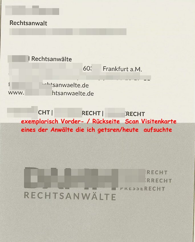 exemplarisch Vorder- / Rückseite Scan Visitenkarte eines der Anwälte