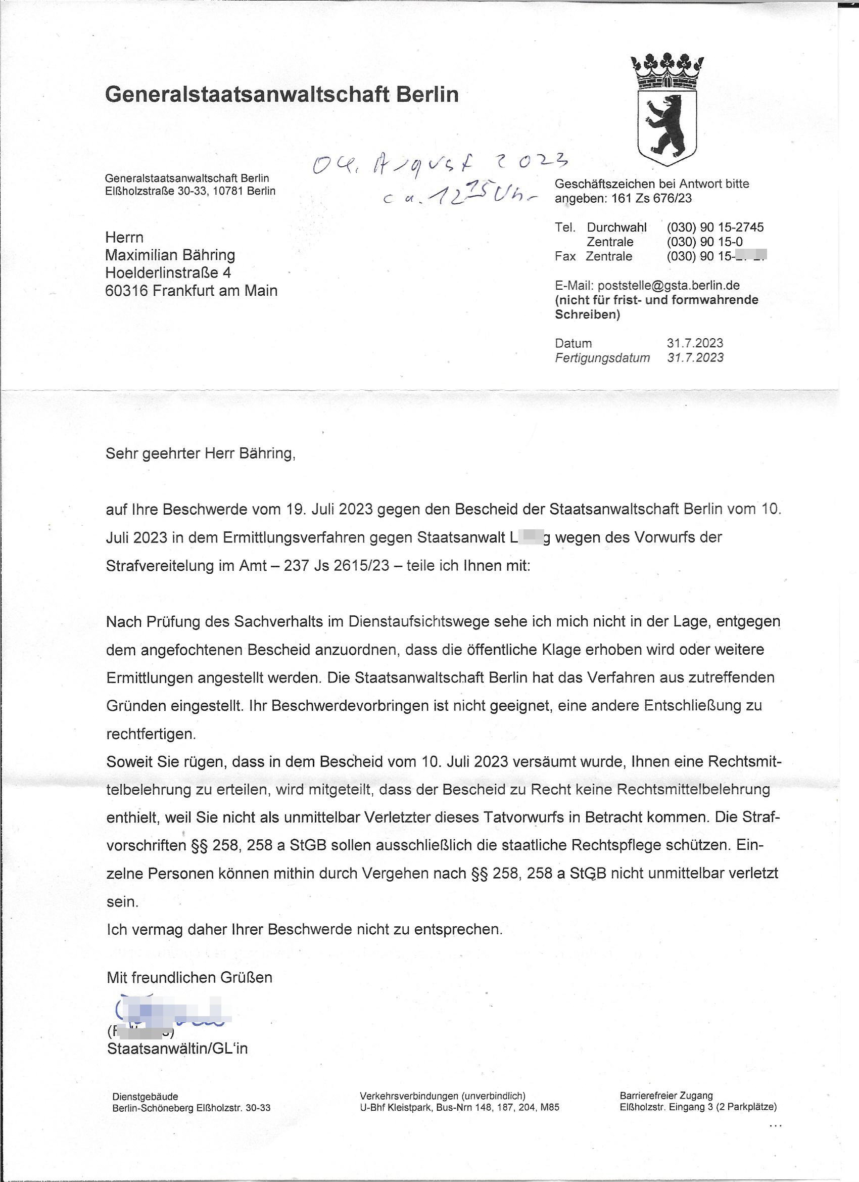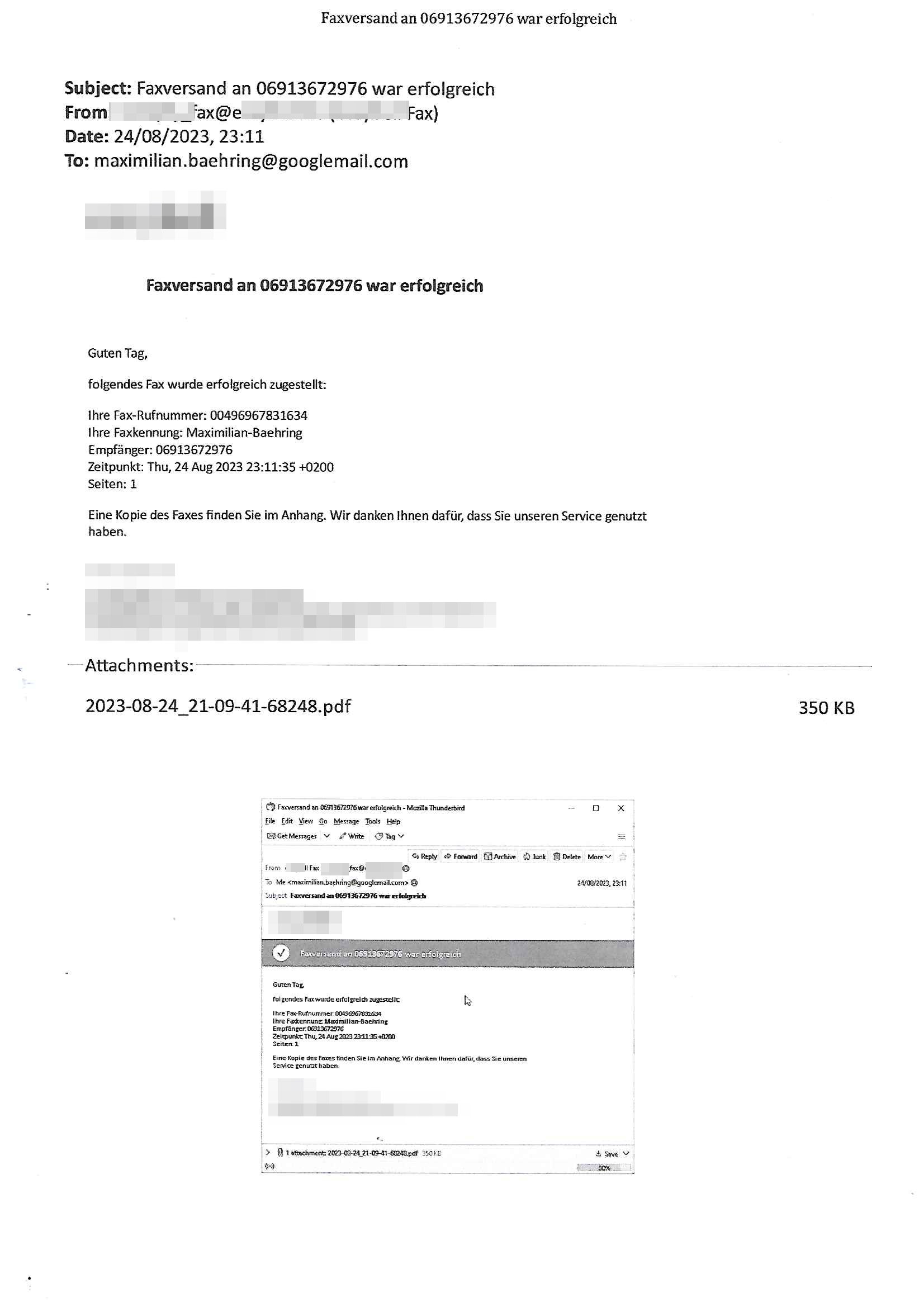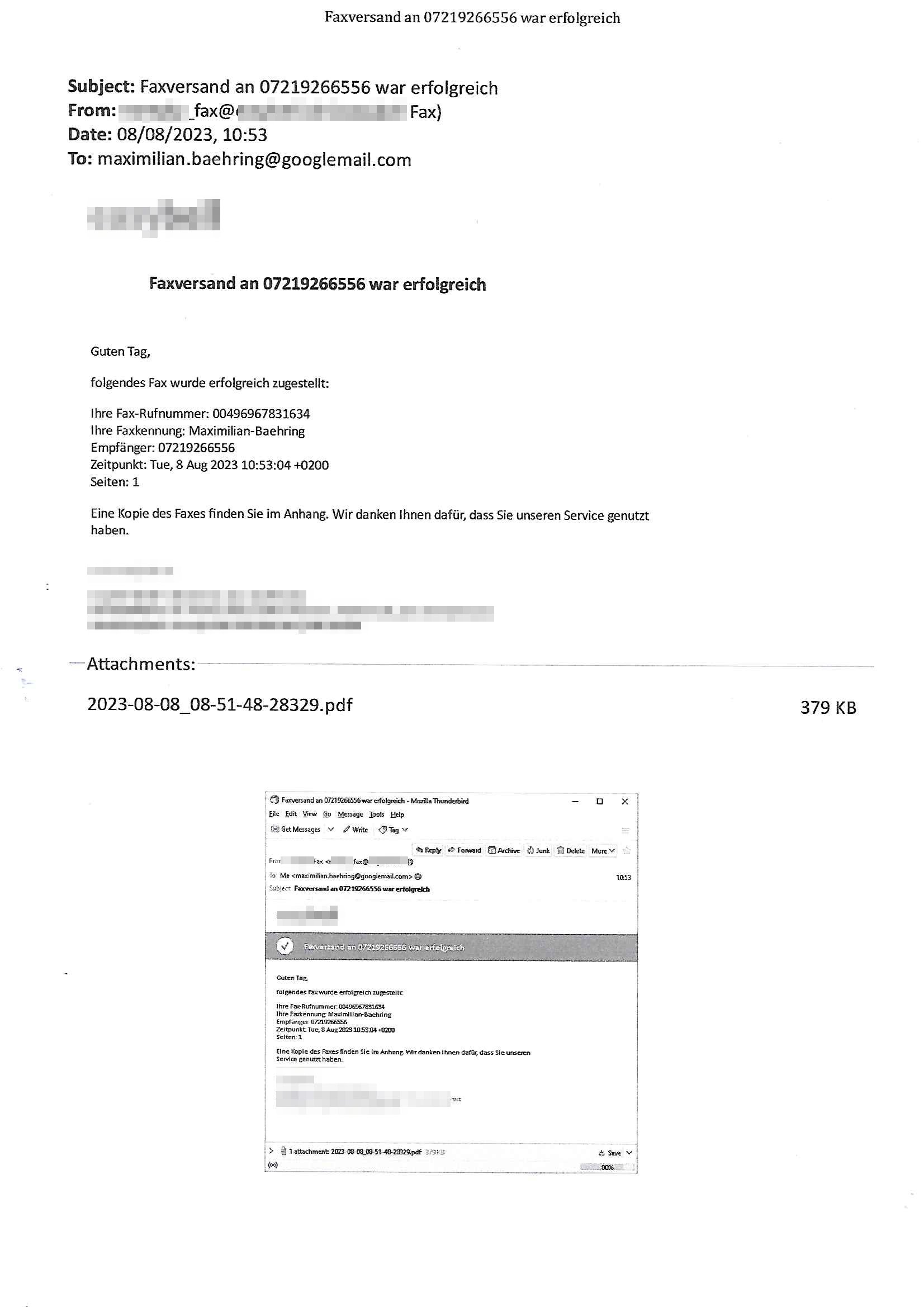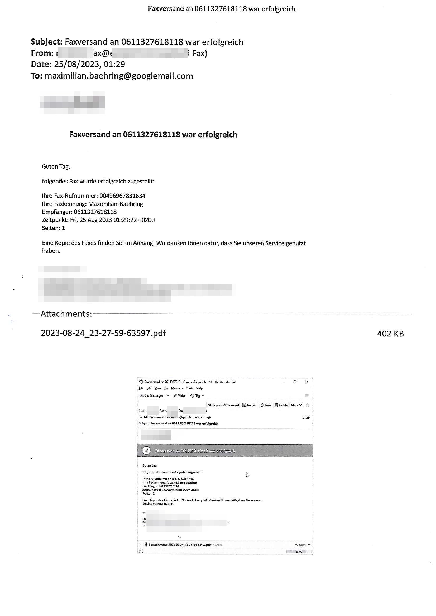 Subject: AW: EILT! Berufung in 380 C 478/21 (14) Amtsgericht Frankfurt a.M. Höchst Date: Tue, 1 Aug 2023 14:38:05 +0200 From: Sekratariat (Kanzlei RA**Dar*) <sekretariat@ra*dar**> To: 'Maximilian Baehring' <maximilian@baehring.at>, radar*** Sehr geehrter Herr Baehring, vielen Dank für Ihre Anfrage: Ich habe keinerlei Kapazität Sie in Ihrer Berufungssache zu vertreten und kann auch keinen Kollegen hierfür empfehlen. Bitte sehen Sie von weiteren Anfragen in meinem Sekretariat ab. Bei Rückfragen stehe ich Ihnen gerne zur Verfügung. Mit freundlichen Grüßen M***Darr, Rechtsanwalt *** | *** * | 60*** Frankfurt am Main | Telefon +49 69 *** | Telefax: +49 69 ***| Email: Kanzlei@ra*dar*** -----Ursprüngliche Nachricht----- Von: Maximilian Baehring <maximilian@baehring.at> Gesendet: Dienstag, 1. August 2023 13:54 An: radar*** Betreff: EILT! Berufung in 380 C 478/21 (14) Amtsgericht Frankfurt a.M. Höchst wie telfonisch besprochen, auch schon als Fax Maximilian Baehring | |