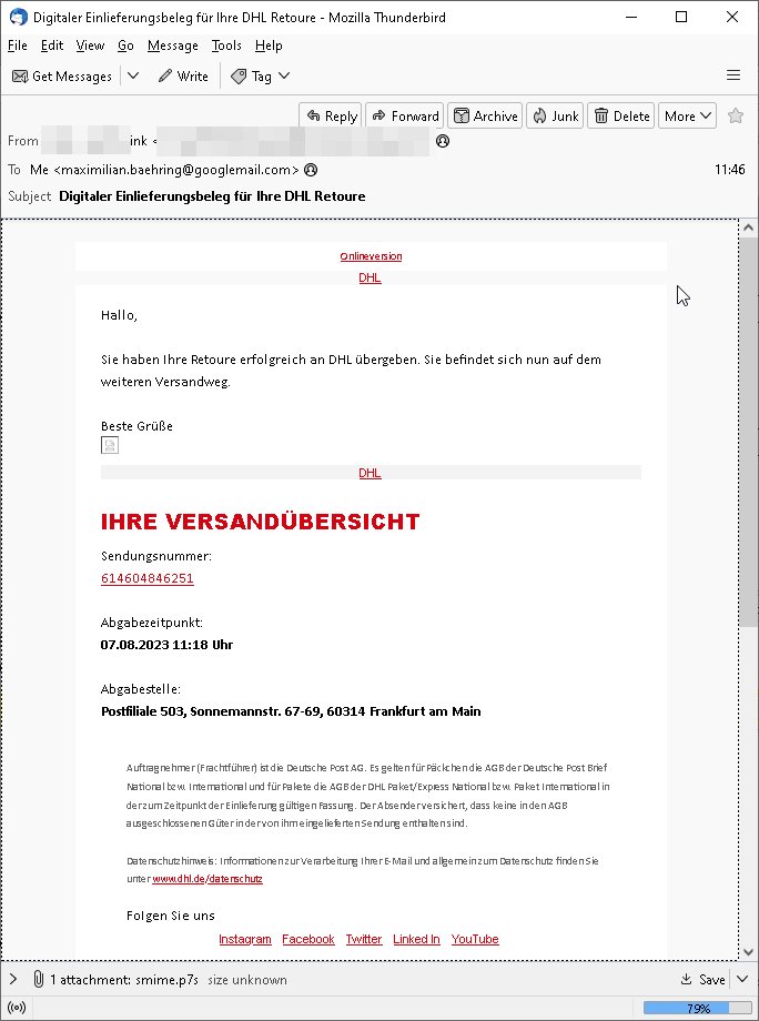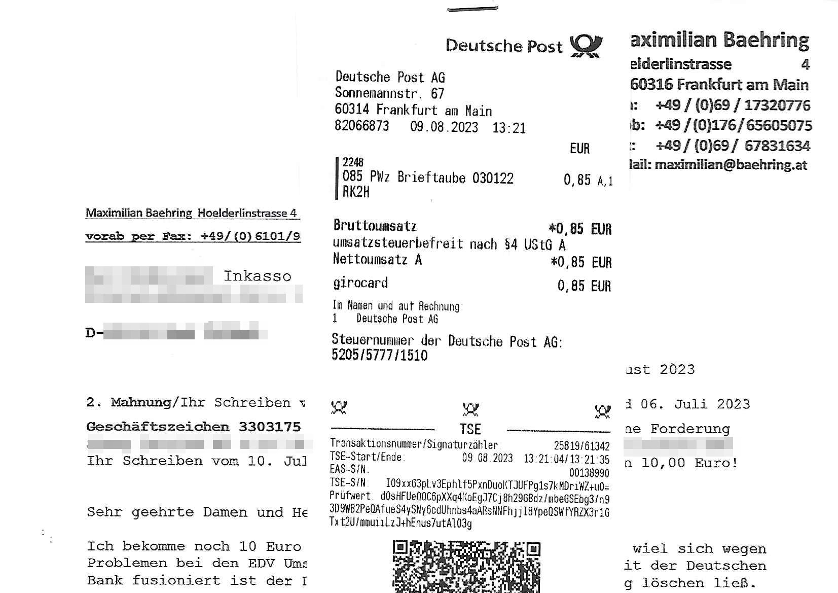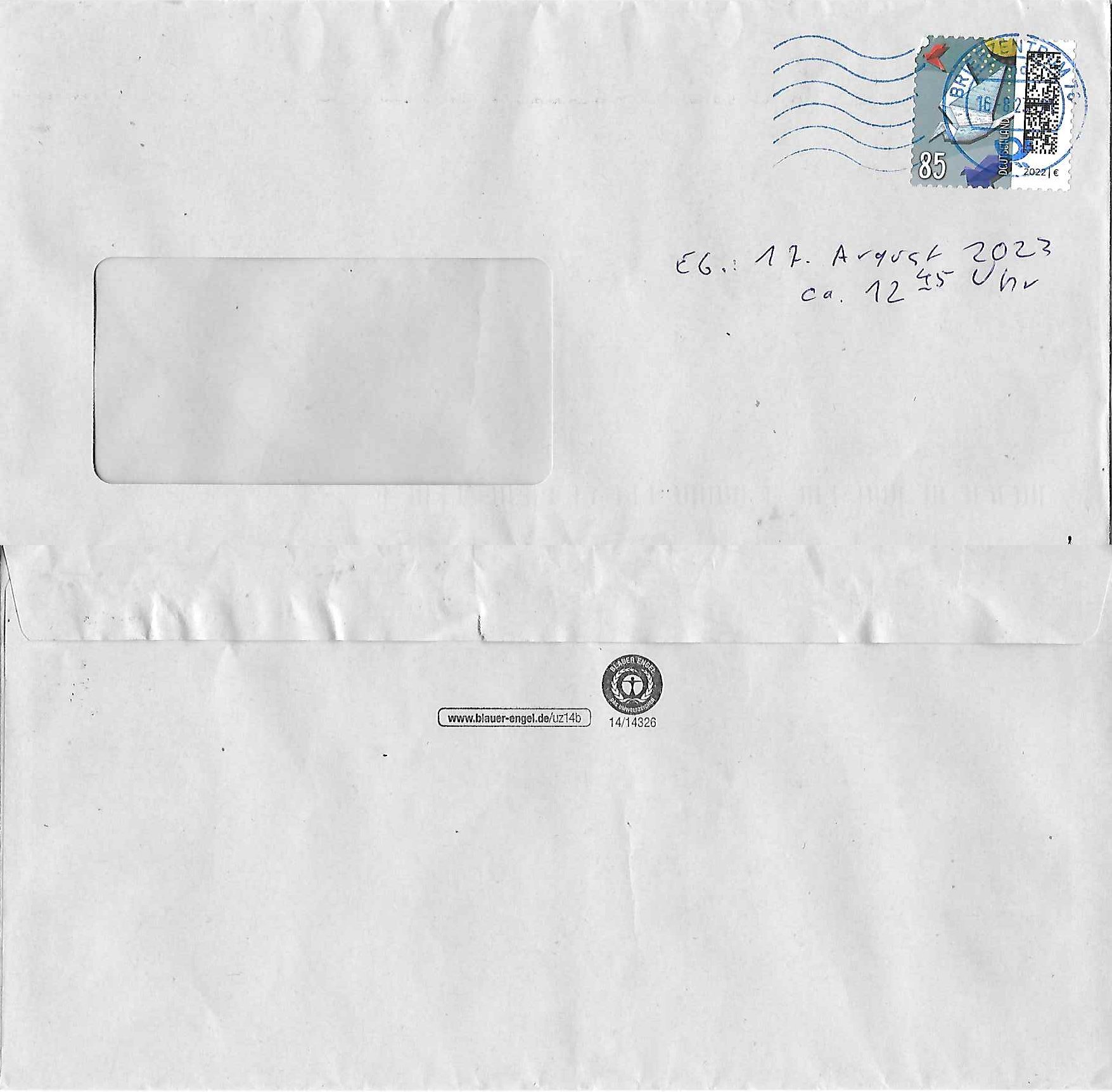 ein-gansgbestempelten Duoliate als Scan gemailt damit er sieht daß