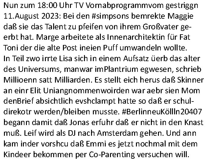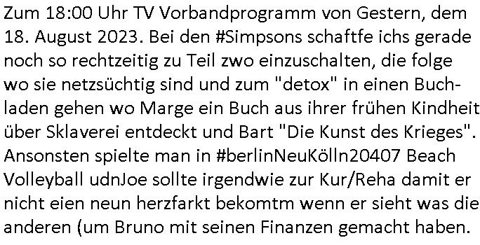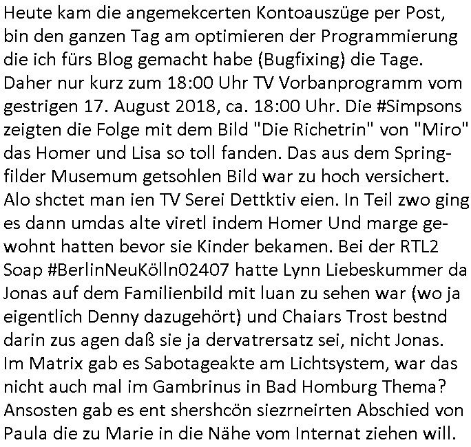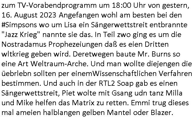 Blogs hier stets erwähnten 18:00 Uhr TV Vorabendprogramms vom gestrigen