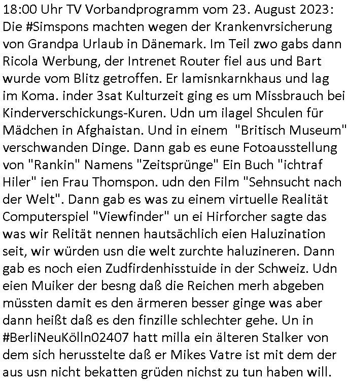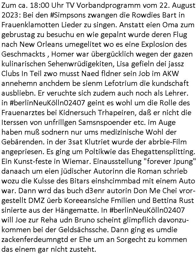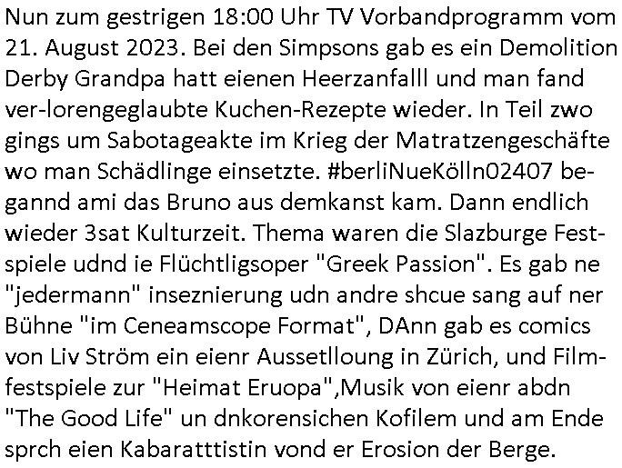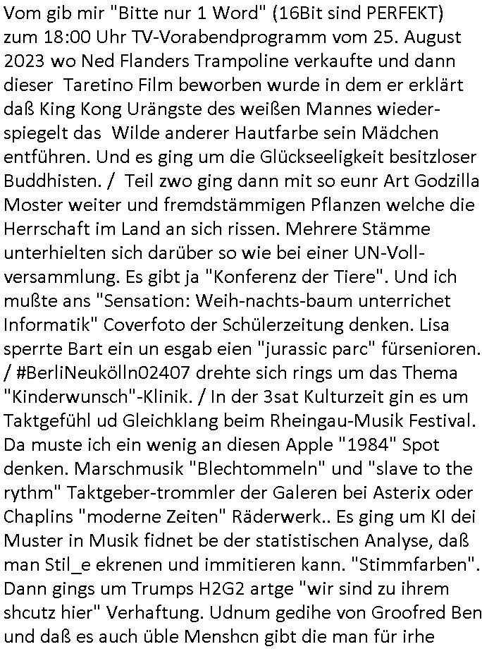 31. Juli 2023 hab ich nur ab ca. 20:05 uhr das End mitebkommen von