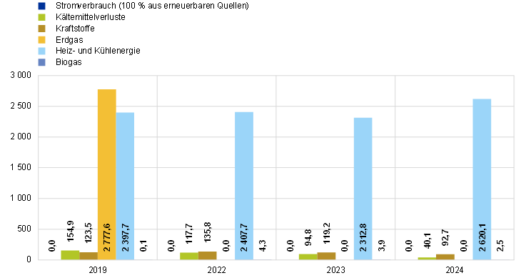 3 | Kältemittel-verluste externes Rechenzentrum | Daten: gut (Anteil der EZB am gesamten Verbrauch der Rechenzentren); Faktor: sehr gut (DEFRA) | ||