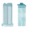 - energieeffiziente dreischichtige Fassade des Büroturms