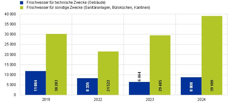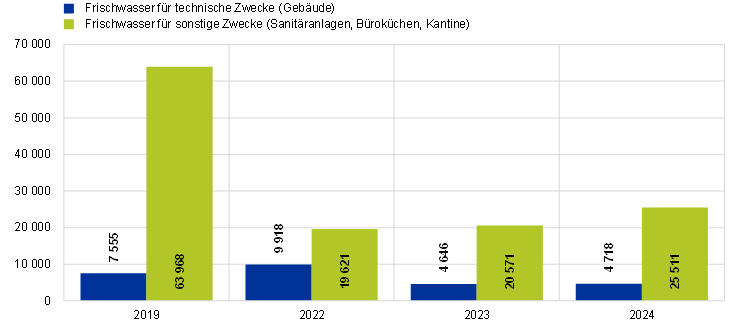 2024 konnte die EZB mit dem am Hauptgebäude gesammelten Regenwasser 1,8 % (548,8 Kubikmeter) ihres Frischwasserverbrauchs decken.