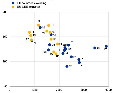 3. The CEE countries in this blog post comprise Bulgaria, Croatia, Czech Republic, Estonia, Hungary, Latvia, Lithuania, Poland, Romania, Slovakia and Slovenia. For further analysis of the drivers and implications of higher inflation in euro area CEE countries, see Falagiarda, M. (2024), “Inflation in the eastern euro area: reasons and risks”, ECB Blog, 10 January.