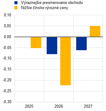 Vplyv výraznejšieho presmerovania obchodu a nižších čínskych vývozných cien na vývoz