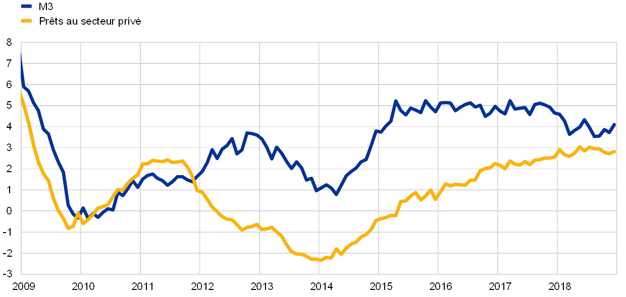 En 2019, une forte relance monétaire demeurera essentielle pour assurer la poursuite à moyen terme du renforcement des tensions domestiques sur les prix. Compte tenu de la persistance des incertitudes liées aux facteurs géopolitiques, de la menace protectionniste et des vulnérabilités des marchés émergents, la patience, la prudence et la persévérance resteront de mise dans la conduite de la politique monétaire de la zone euro.